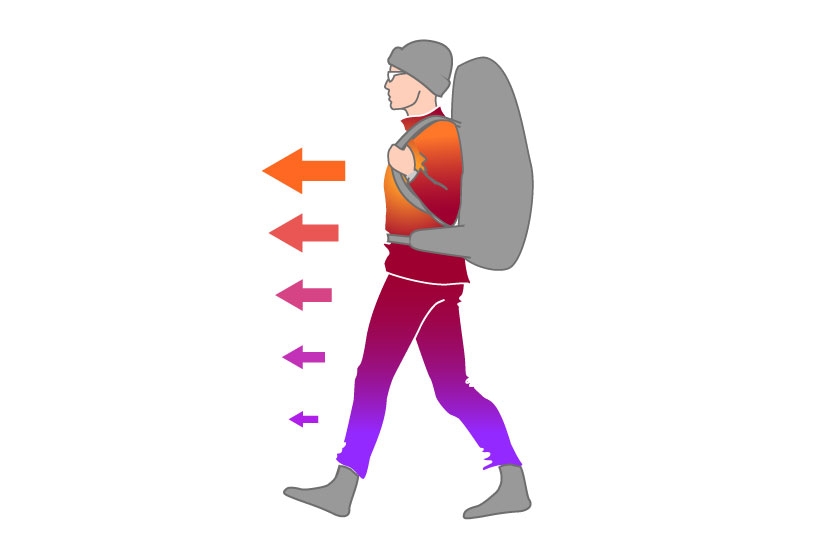 Как известно, наше тело постоянно испаряет влагу, и объем этих испарений увеличивается во время физических нагрузок. Различные участки тела разогреваются и испаряют влагу по-разному (маркетологи, рекламирующие дезодоранты, на этой особенности организма собаку съели). Соответственно в каждом отдельном элементе костюма формируется своя «внутренняя атмосфера» со своим уровнем давления водяных паров. В результате, даже если термобелье, утеплитель и, что самое главное, внешний мембранный слой имеют идентичные параметры, скорость отвода влаги будет выше там, где давление паров больше. В тех же элементах одежды будут более заметны любые неприятные эффекты, связанные с ограничениями применимости мембраны, например отсыревание внутренних слоев после резкой остановки движения.