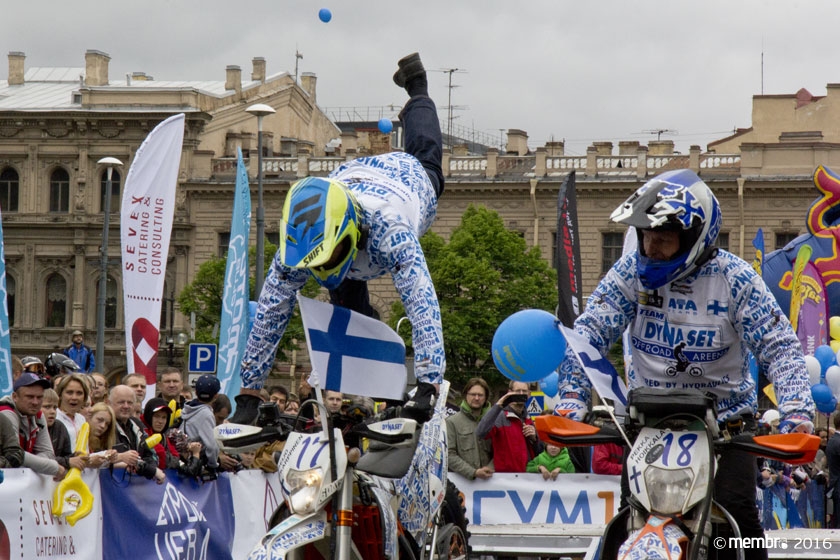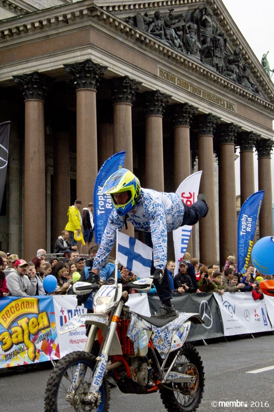 Утром 28 мая величественный покой Исаакиевского собора был нарушен ревом мощных спортивных моторов. Низкий рокот многолитровых вездеходов и бодрый треск двухколесных эндуро слились в торжественную симфонию, столь приятную уху любого искателя внедорожных приключений. 188 экипажей — участников одной из самых сложных и опасных гонок 4х4 — поочередно поднимались на стартовый подиум, откуда под овации зрителей, поклонников и преданных болельщиков отправлялись навстречу стихиям дикого бездорожья.
