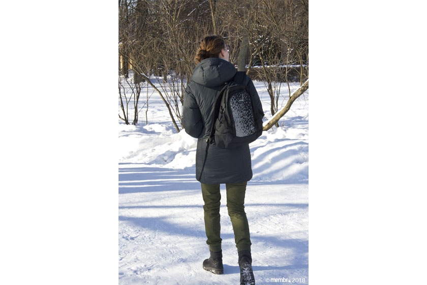 Как бы холодно или тепло ни было на улице, когда заходишь в помещение или в транспорт, приятно чувствовать (ну или хотя бы воображать, что чувствуешь) работу мембраны с паропроницаемостью 16 000 г по А1: никогда не вспотеешь от резкого перепада температуры. Благодаря той же мембране ткань хорошо сопротивляется ветру. По субъективным ощущениям, пара градусов тепла в ветренную погоду добавляется благодаря мембране.