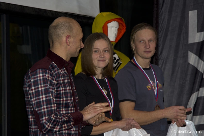 Награждение призеров чемпионата России по альпинизму 2016 в высотно-техническом классе. Марина Попова и Денис Прокофьев (Красноярск)